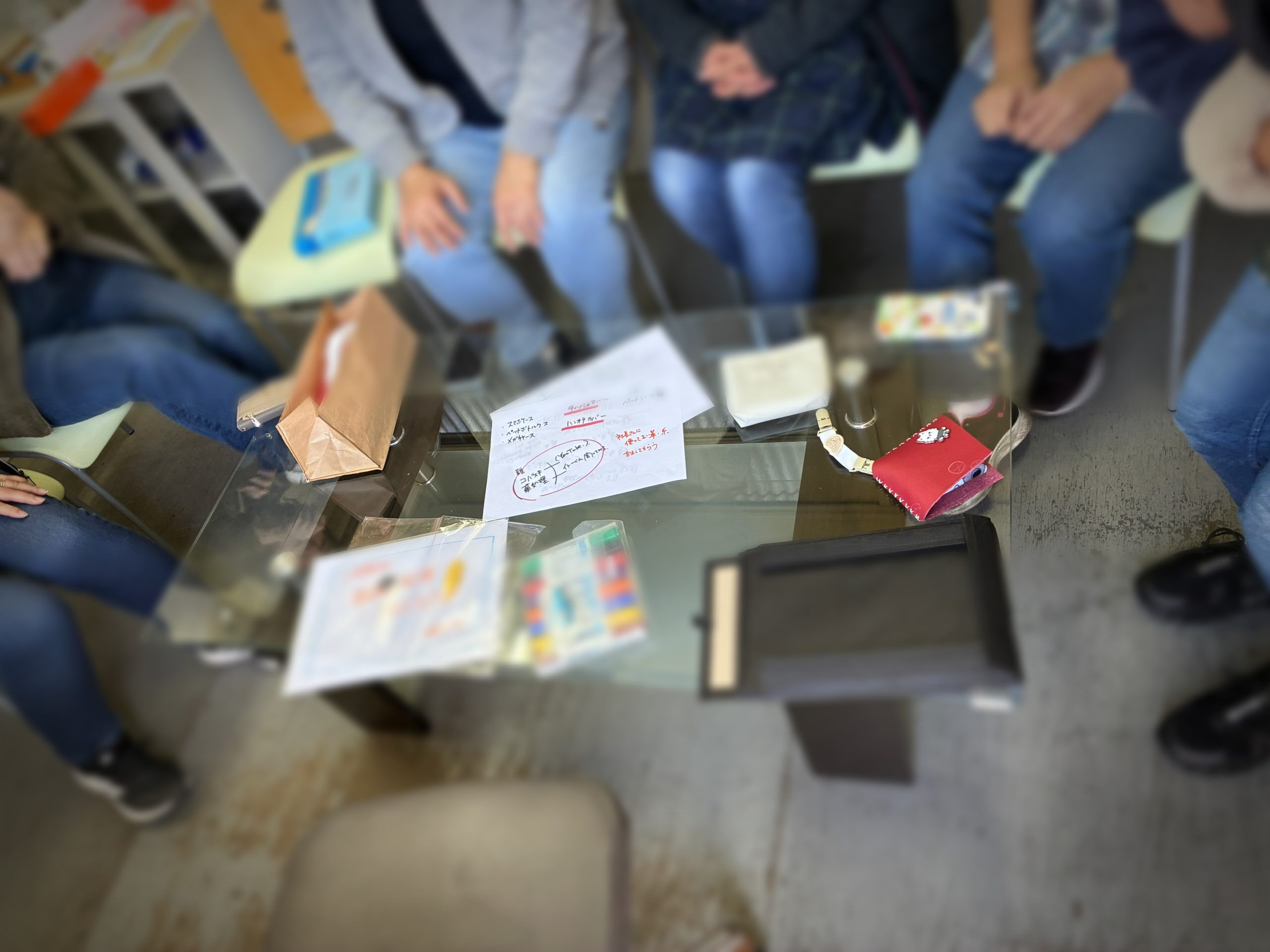 革で作りたいもの、作れそうなものを考えてきて持ち寄り話し合いが持たれました